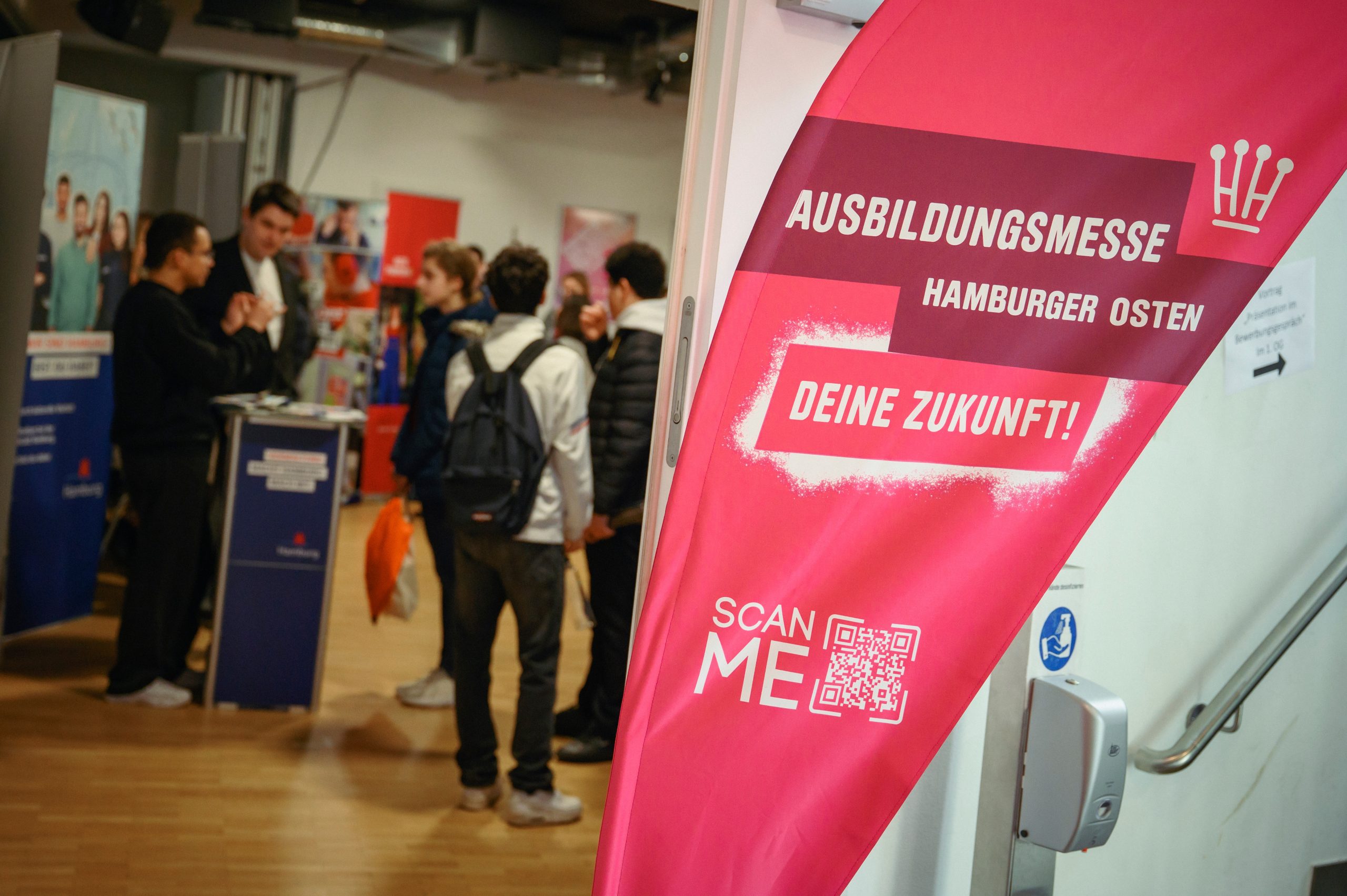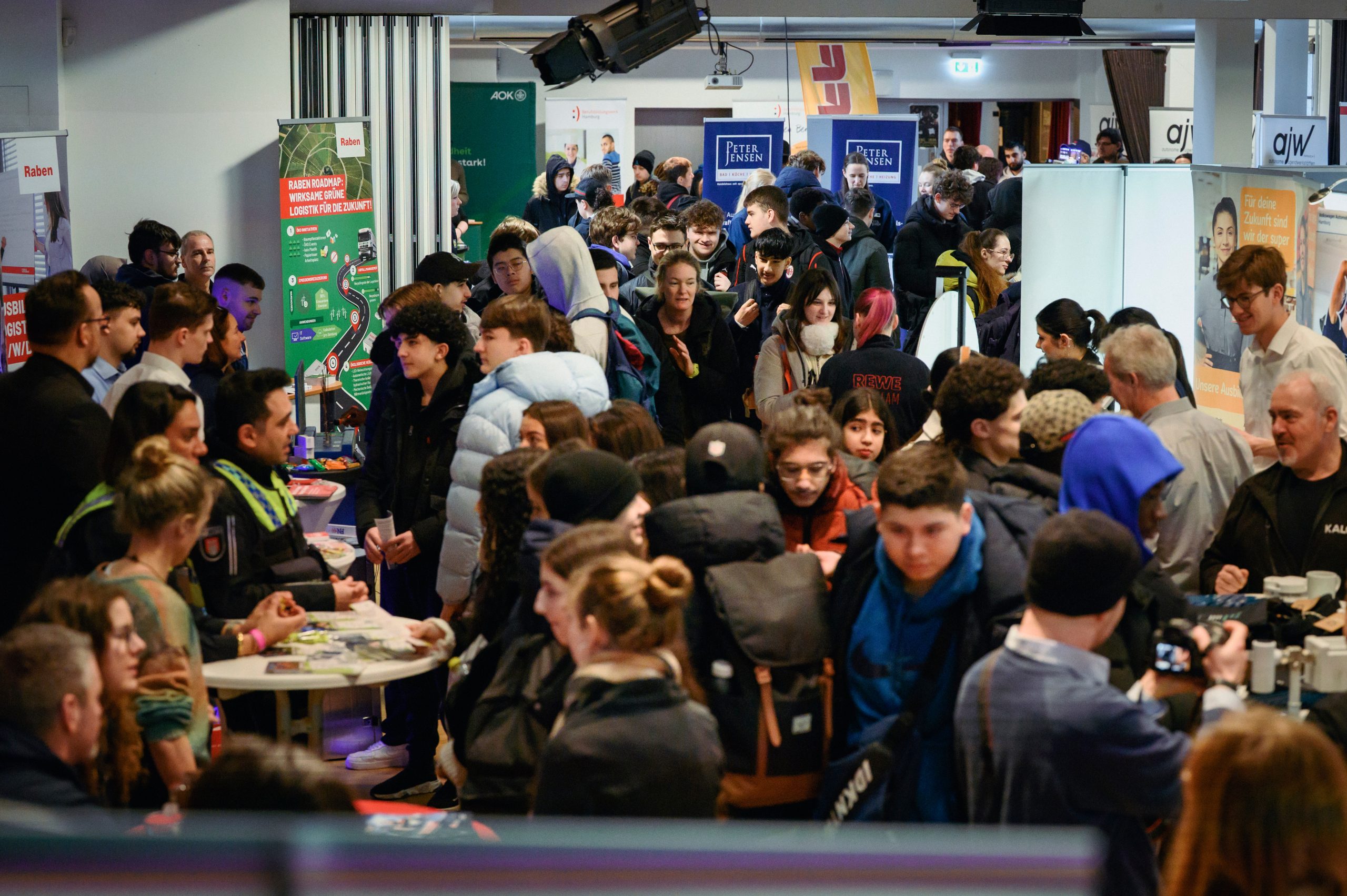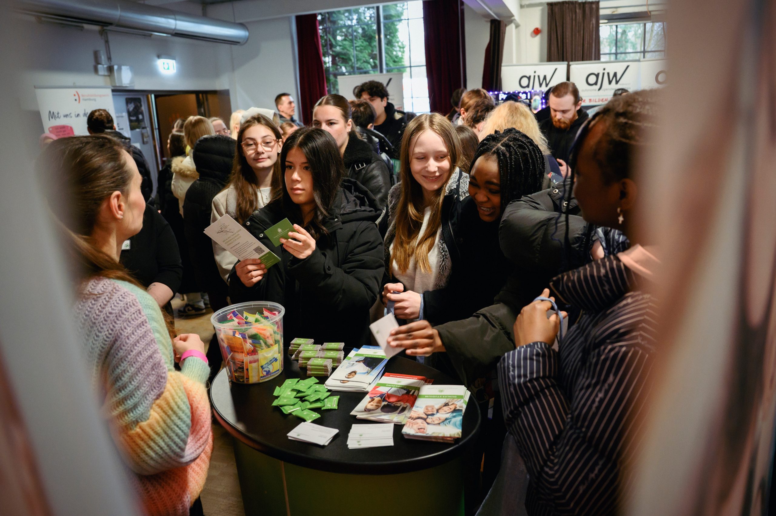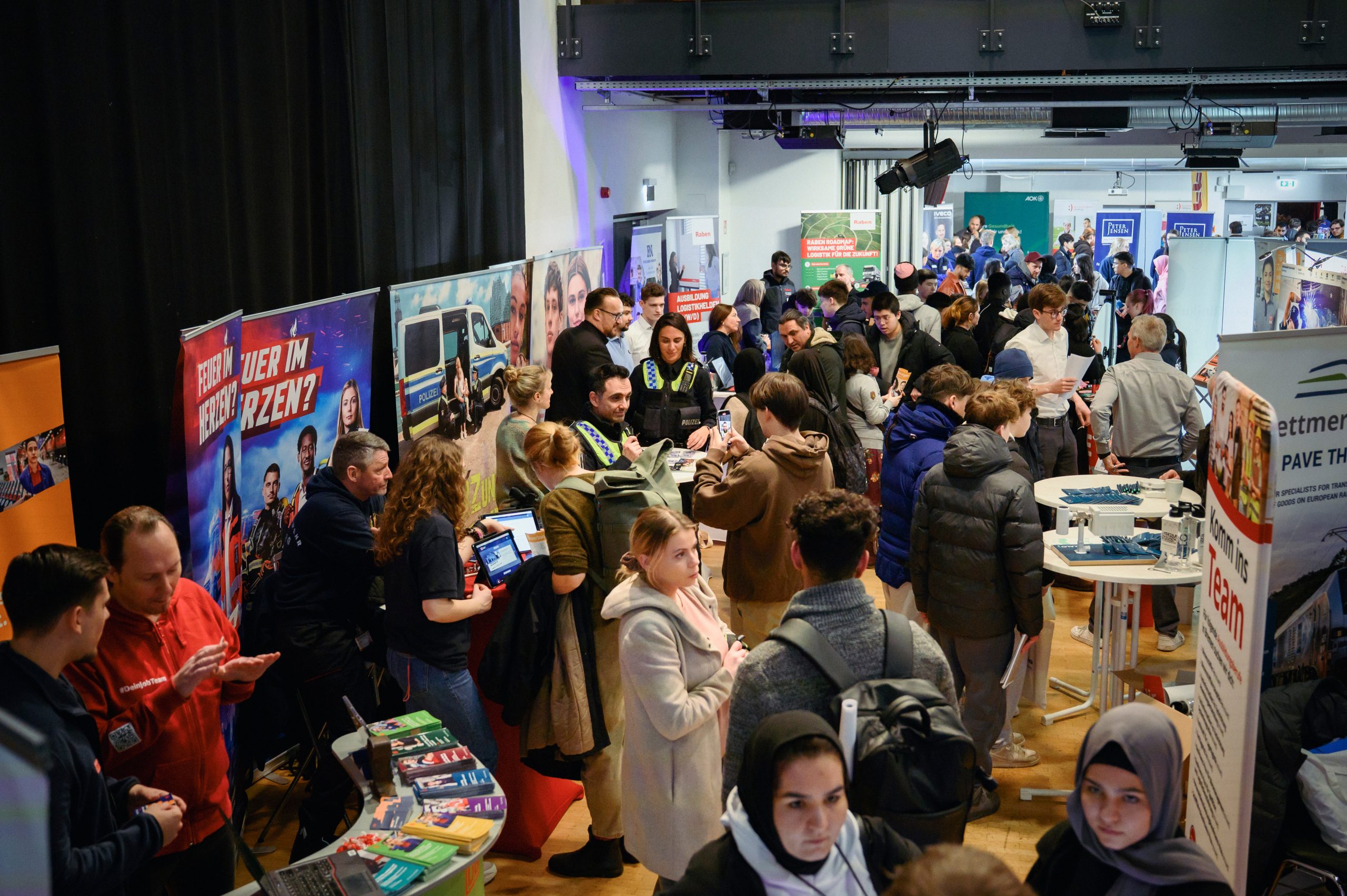 Stände und Schüler*innen auf einem Blick