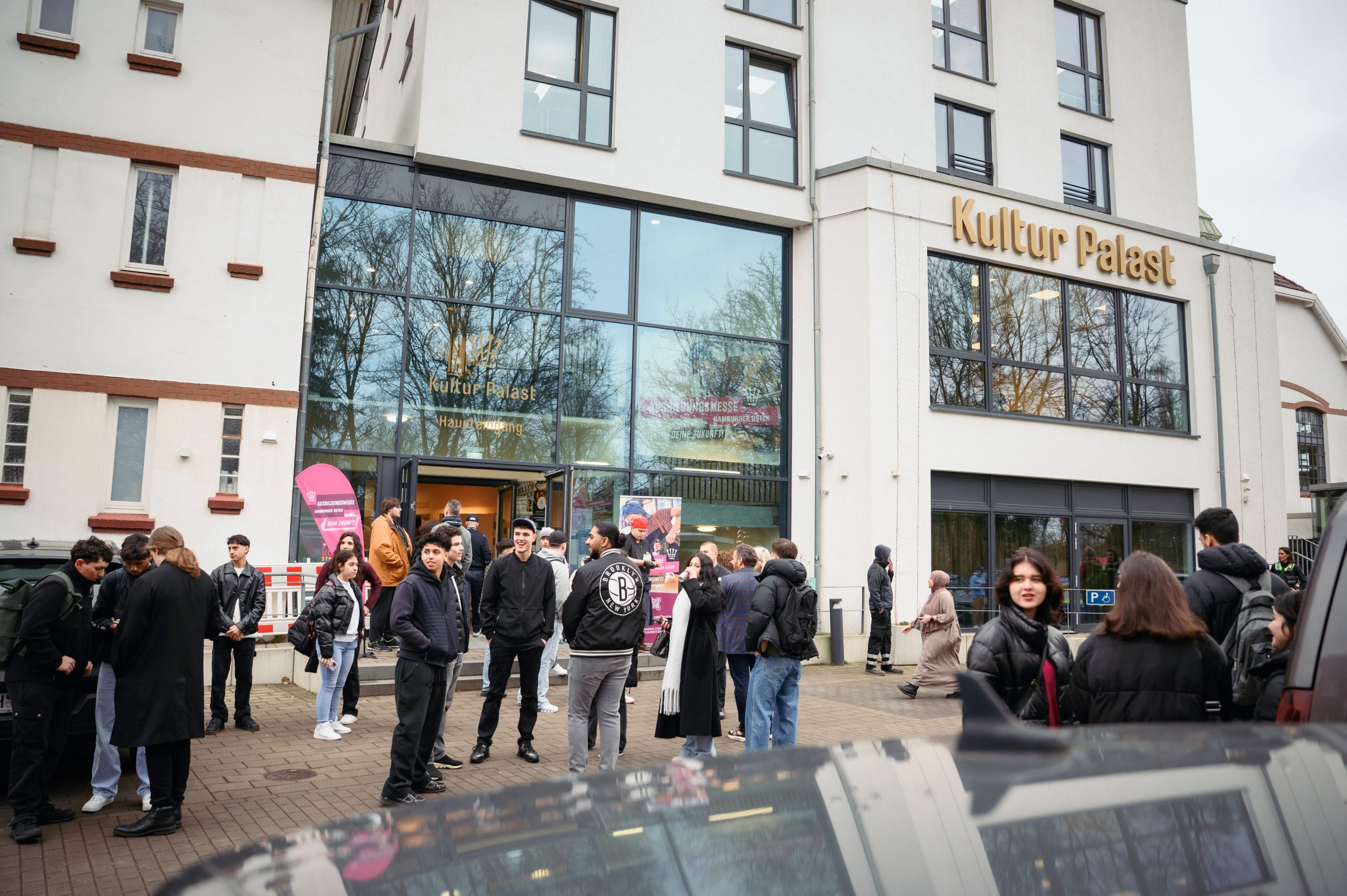 Schüler*innen vor dem Kultur Palast