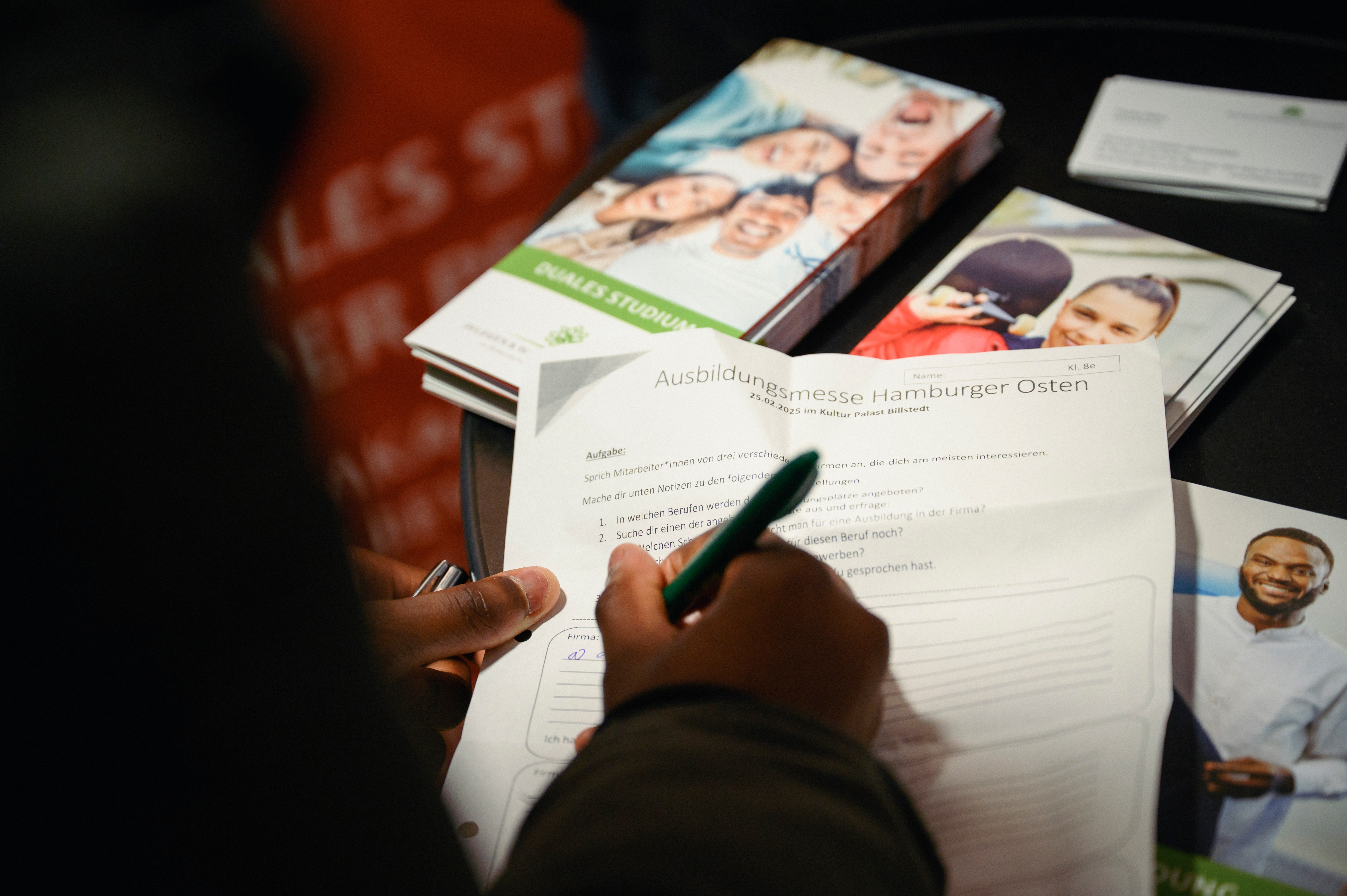 Checkliste für die Ausbilungsmesse! Die Schüler füllen ihre Liste für die Messe aus.